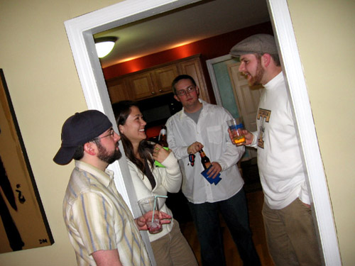 Last night, we had a little get together with some of the bloggers that I know IRL, at our house. I wanted an opportunity to hang out with some cool people, and if I do say so myself, it was a cool bunch indeed. Conversation flowed like the alcohol; all night long. I didn’t get very many pictures, but the ones that I did can be found on my flickr page, and will soon be added on my photographs page. I am really glad that everyone came, and I honestly wish that we could do more things like this! And! The floor didn’t fall in, which was a total plus!! Next time, we will have to integrate Irish Car Bombs somehow, rather than just talking about them…