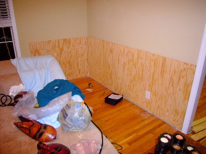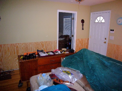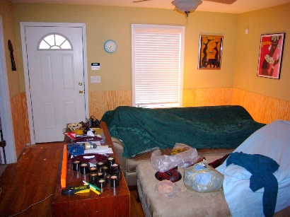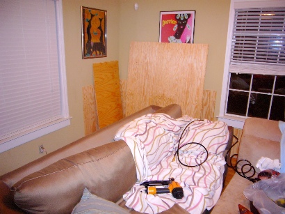Finally, we got home, and a couple of our neighbors had called us to let us know that our house was okay, but that the fence behind our house didn’t fare so well. Basically, the storm took out two major trees in the back of our property, splitting them right at the ground, and sending them toppling over our fence, shed, and into our neighbor’s yard. The entire fence wasn’t taken out, but major chunks are going to need to be replaced. We had a little tin shed in the back yard that was full to the brim with our power tools and home improvement equipment, and as of right now, it looks like a crumpled up tin can. It was completely smashed. The funny thing, is that the new table saw that we bought to do the hardwoods took the brunt of the tree, and managed to save every thing shorter than it, including the much more expensive lawnmower, leaf blower, and weed eater. It might not be salvageable, but it definitely did its duty to protect its fellow shed-mates.